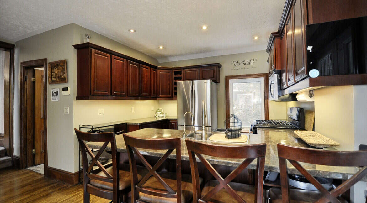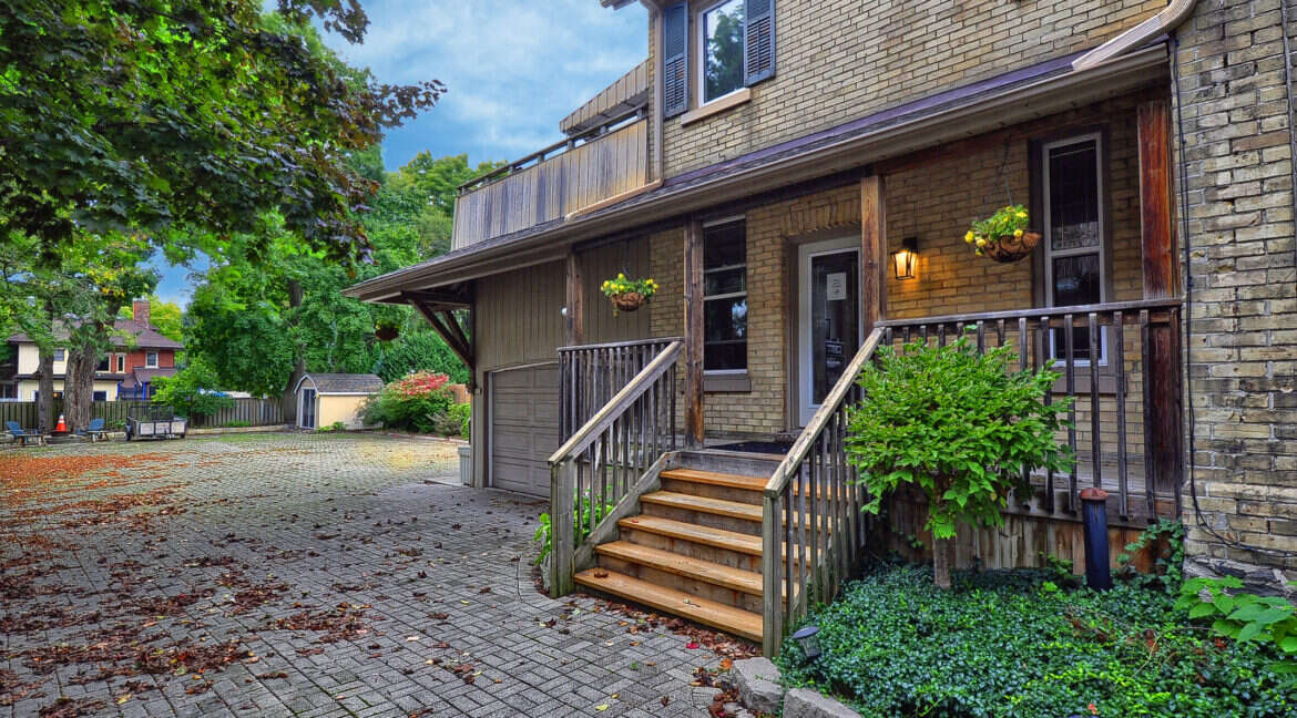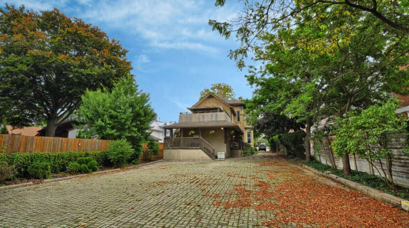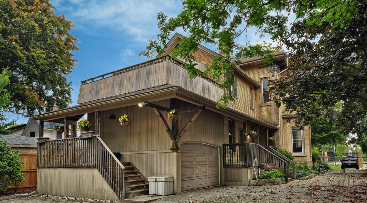 This distinctive century home, perfectly located in the heart of Woodstock, presents an extraordinary opportunity for versatile living or potential conversion into a duplex with two separate units. The main level boasts three spacious living areas, complemented by a convenient 2-piece washroom. Upstairs, the current residence features a generous living and dining area that can easily be transformed back into two large bedrooms, along with a full kitchen and bath. With soaring 11-foot ceilings on the main level and 9-foot 10-inch ceilings above, the interior showcases original details and elegant moldings that exude character and charm. Step out onto the covered rear deck, which offers direct access to the backyard, and explore the potential of the third-floor loft space, equipped with rough-in plumbing for an additional bathroom.