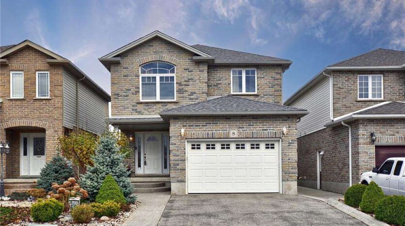 Welcome to 8 Lockwood Street, a stunning two-story detached home nestled in the desirable East Galt neighborhood, close to the Grand River, schools, parks, and nearby cities. Upon arrival, you’ll be greeted by beautifully maintained landscaping and a spacious double-wide driveway and 1.5 garage. Inside, this home invites you into a bright foyer with ceramic tile that flows into the dining area, featuring elegant hardwood flooring. The main floor living room is warm and inviting with a gas fireplace and connects seamlessly to a kitchen, complete with a floor-to-ceiling pantry, ample cabinetry, tile backsplash, and a spacious dining area with glass sliding doors leading to the backyard. A convenient 2-piece bathroom and a laundry room complete this level.
